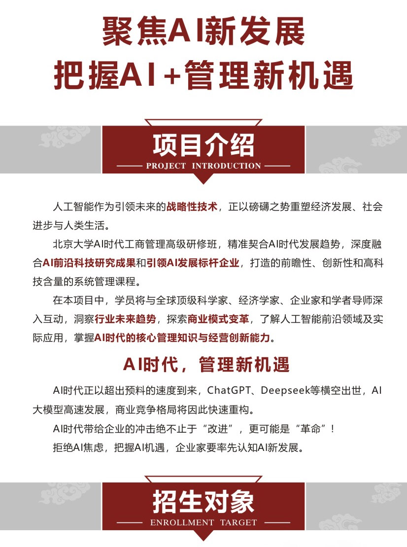北京大学AI时代工商管理高级研修班招生中